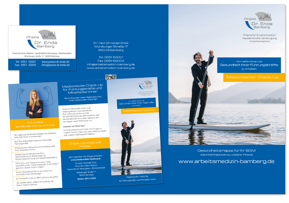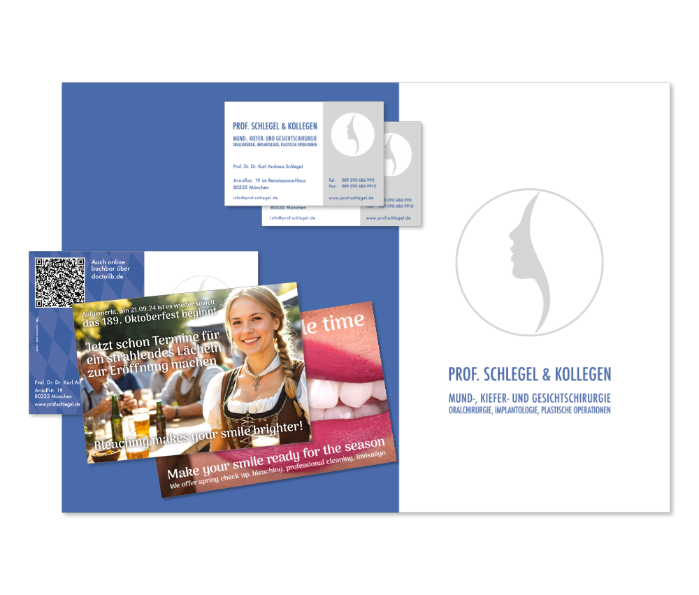 Als erfahrene Webdesigner bieten wir Ihnen nicht nur ansprechende und moderne Homepages, sondern auch die Gestaltung und Produktion von Druckvorlagen für die gängigsten Printmedien sowie Ihre Außenwerbung und Firmenbeschilderung. Darüber hinaus entwickeln wir individuelle Logos, die Ihre Praxis unverwechselbar machen.